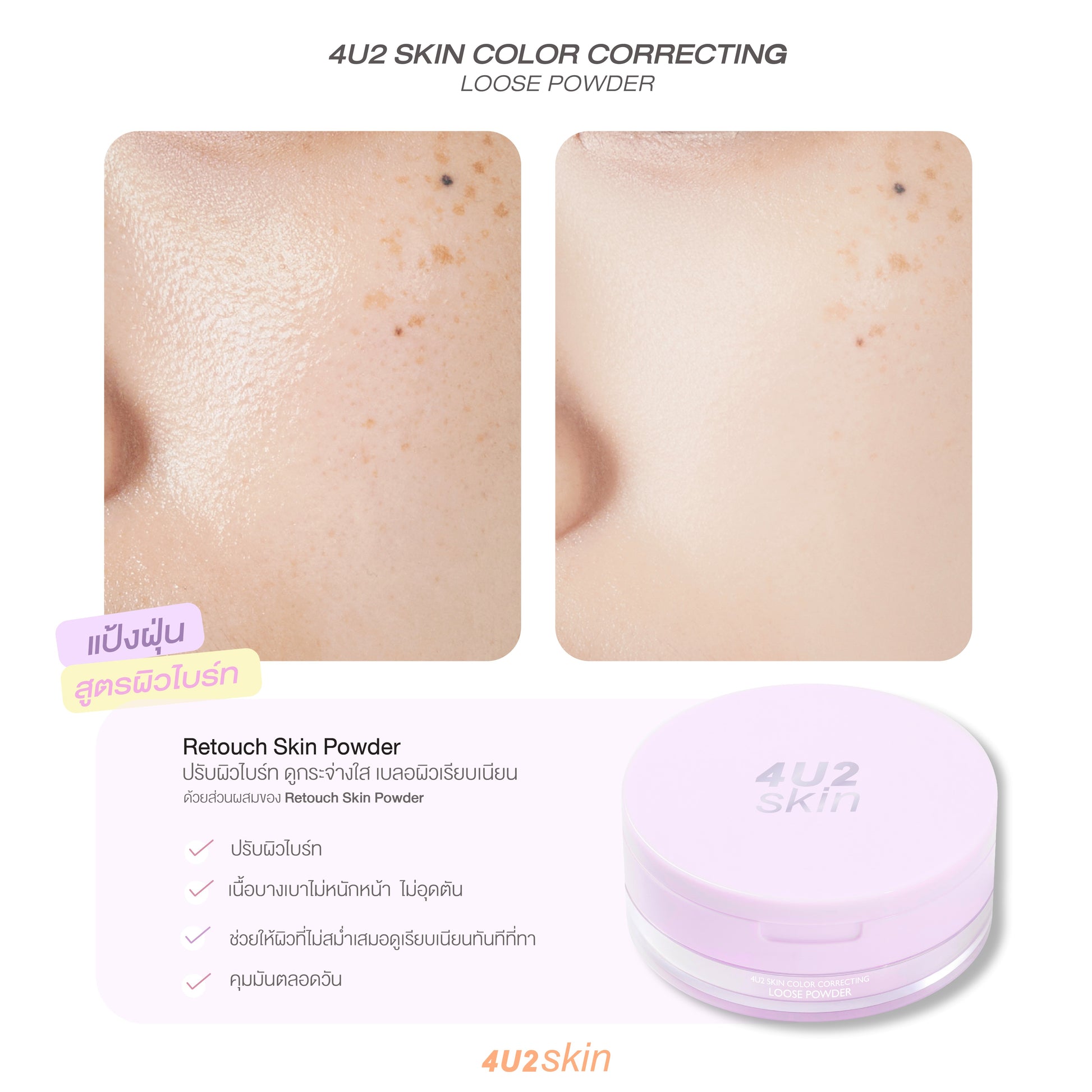 Brighten, blur, and glow with the 4U2 Purple Loose Powder—because your skin deserves to shine, naturally! ✨